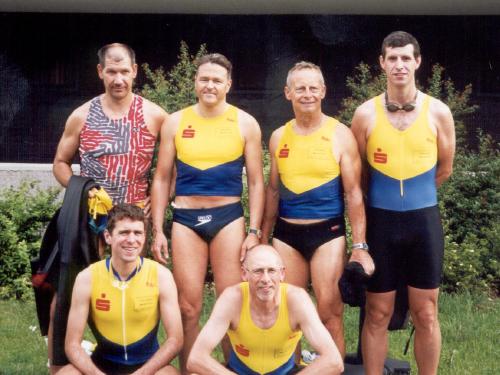 Es war eine guter Wettkampf, so die Triathleten vom TriTeam Sinzig: Hans Werner Heinz, André Schmalz, Lothar Meinert, Frank Nachtsheim (v. l. n. r.) Christian Schindlatz, Manfred Laux (v.l.n.r. knieend) |