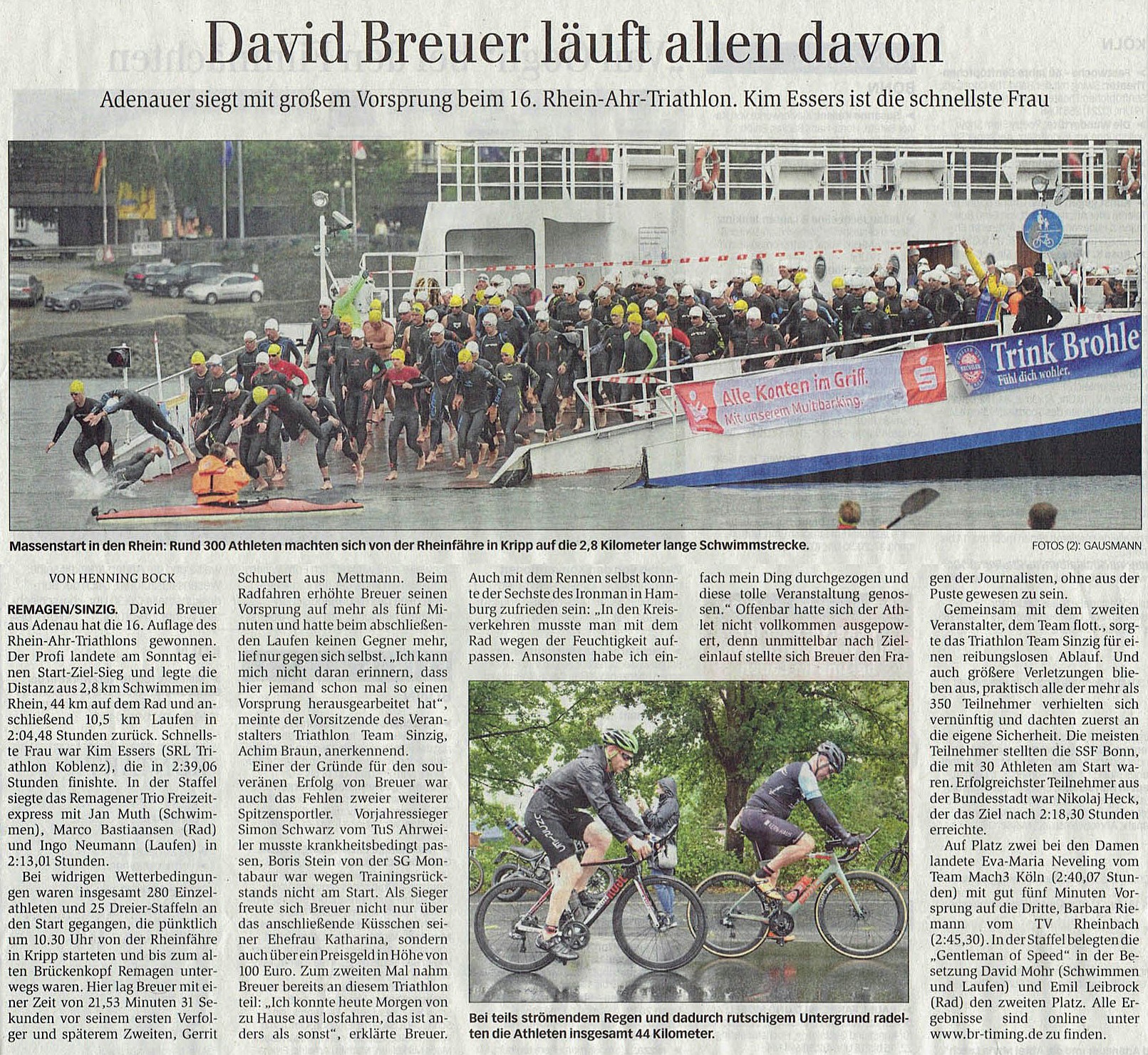 Bilder und Presseberichte 26. Rhein-Ahr-Triathlon 2019